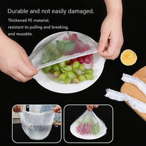 Includes 100 stretchable, easy-to-use plastic food covers – ideal for daily use.
